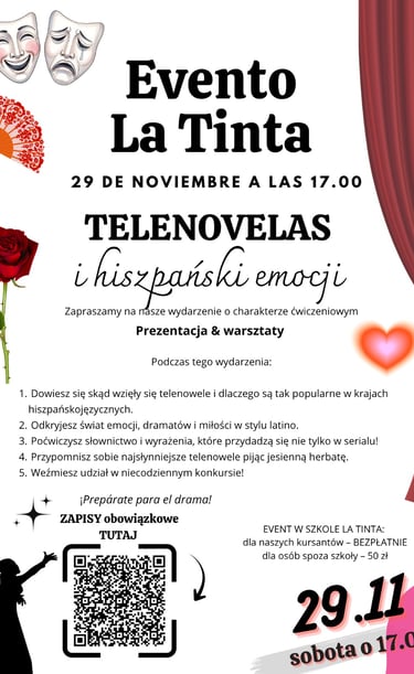 W listopadzie w La Tinta szykujemy coś zupełnie innego – warsztaty, na których nie tylko nauczysz się hiszpańskiego, ale także będziesz mieć okazję wykorzystać go w praktyce.